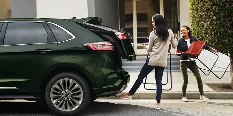 There are four 2022 Edge trim levels available: the SE, SEL, Titanium, and ST. This car has a smooth design with its body-colored exterior mirror caps, body-colored door handles, and black lower cladding. The SE, SEL, and Titanium models all have a bright grille, while the ST sports a bolder look with its gloss-black mesh grille. All models except the SE have heated power mirrors with LED signal indicators.
